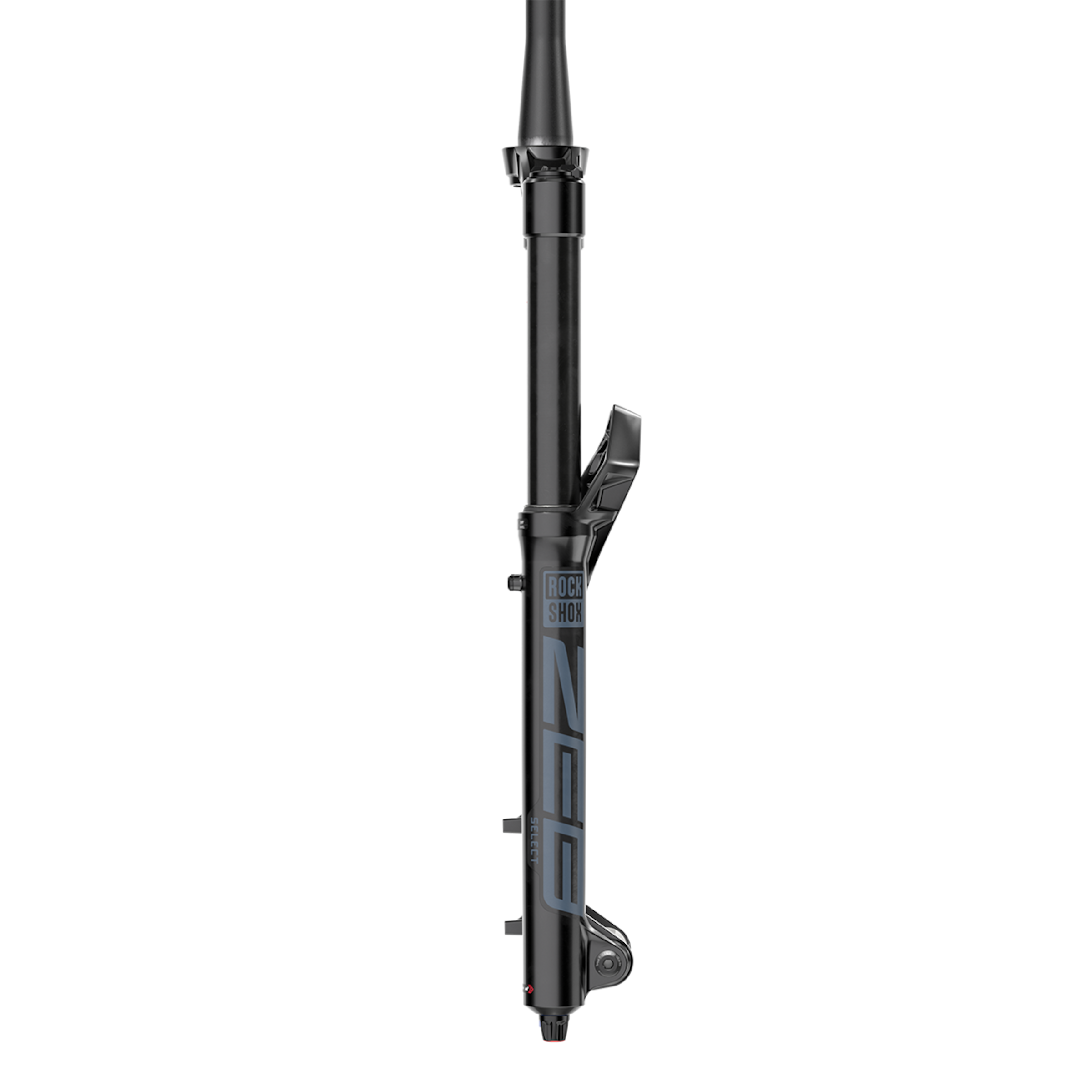 Even visually, RockShox leaves no doubt that the ZEB Select can withstand a lot. The bulky, CNC-machined aluminium fork crown with its angular appearance fits seamlessly into the design of modern frames with voluminous head tubes. The wide flared bridge also aims to avoid collisions with the head tube during hard shocks. On the other hand, numerous cut-outs help to keep the extra weight down despite the increased stiffness.