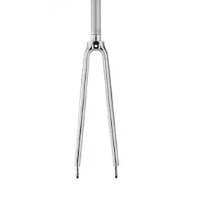 Proven fork material in a modern design. Lavishly produced fork made from 6061 aluminium, suitable for frames with integrated headsets. The polished silver finish and discreet details set new standards in terms of design.