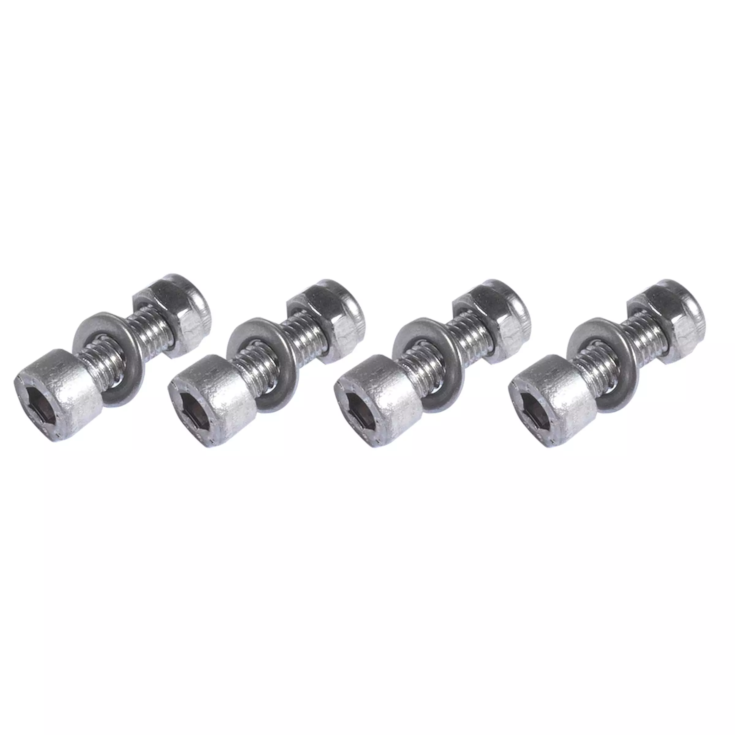 This ROSE mounting kit helps you fit a pannier rack to your bike. The set includes 4 M5 bolts, 4 washers and 4 self-locking M5 nuts each – all made of stainless steel. The bolts are available with a length of 14 mm or 16 mm.