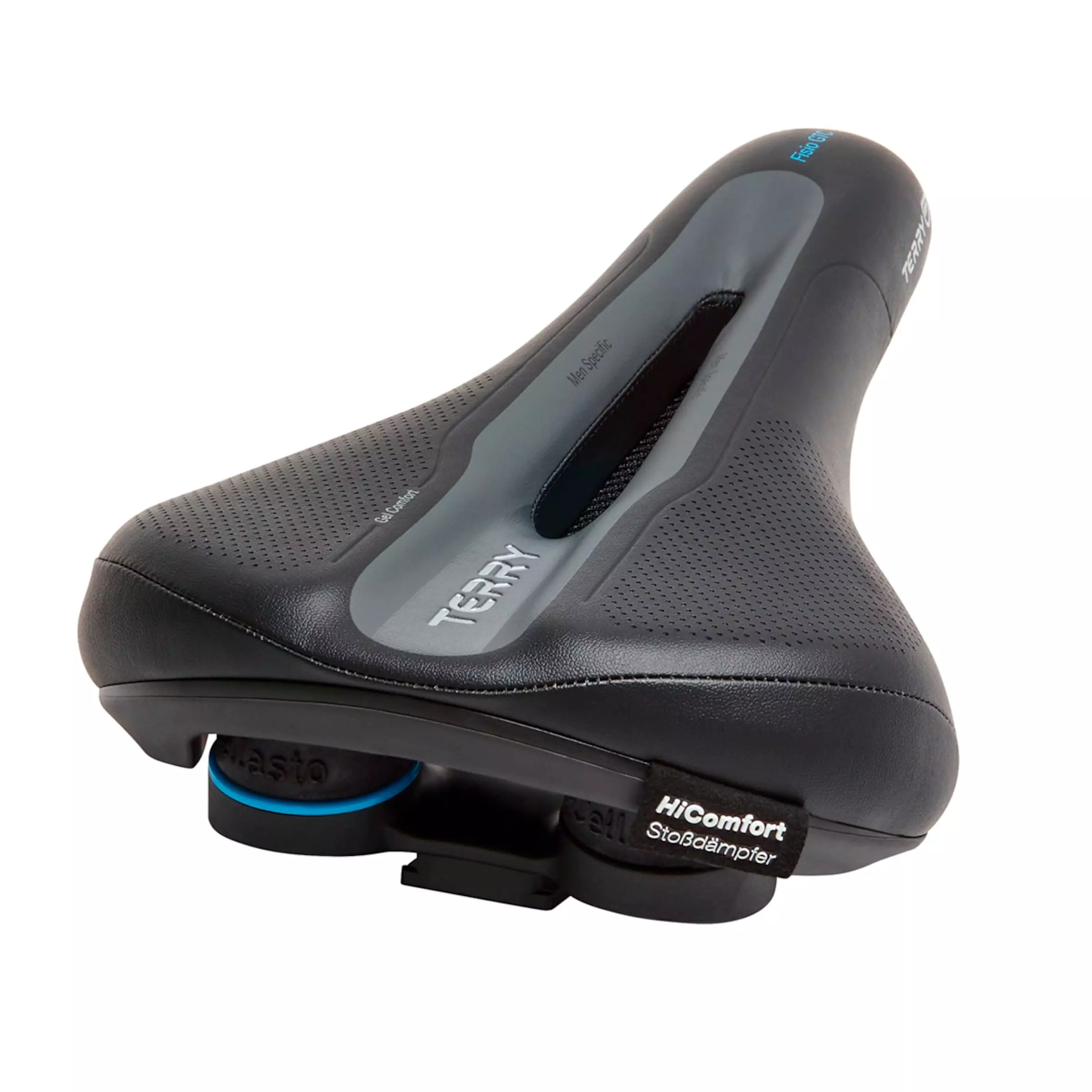 With a shock-absorbing Gel padding and Cellasto damping system, the Fisio GTC Gel Men Touring Comfort saddle by Terry is ideally suited for extended tours. This saddle promises high shock absorption, effective relief for the back and increased comfort. The QuickClick mount for Terry and Topeak saddle bags allows for taking along luggage or mini tools.