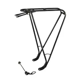 If the brake caliper of your disc brake is in the way again, or thread eyelets are missing completely, you need Tubus Disco. This rack features longer, bent struts in the lower area and is fixed with a quick release within seconds. Thus, the slim rack is very easy to fix.